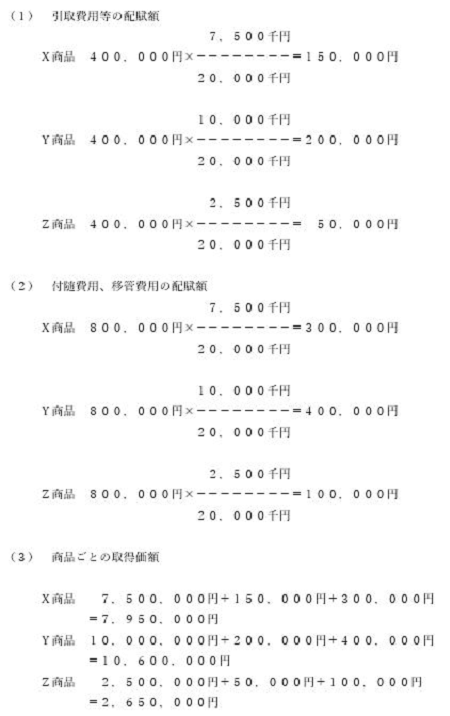 ※ 引取費用、付随費用及び移管費用の合計額により配賦額の計算をした。なお、購入代価の小なる商品には配賦しない。