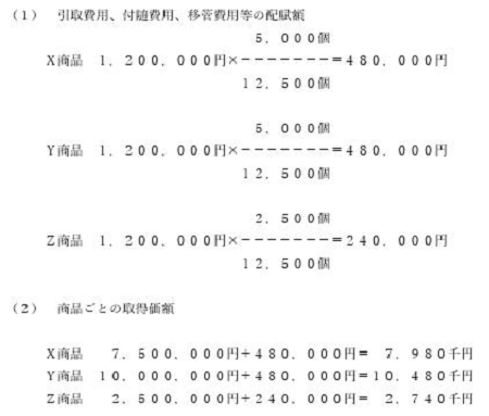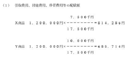 内部文章 法事例1102 付随費用等の取得価額への配賦計算(平成31年4月)