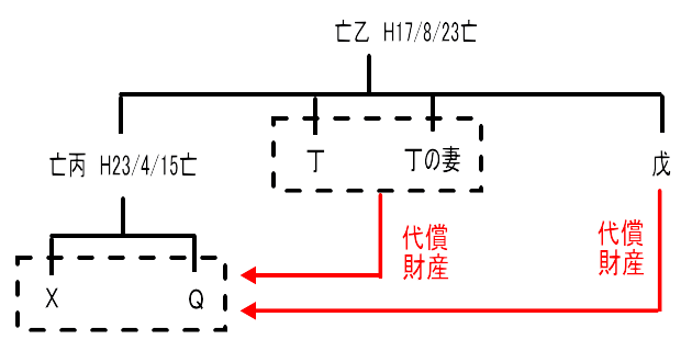丁らは遺産取得の代償として、連帯して、Xらに対し1億2494万円余を支払うことになった(以下、丁らが支払うべき上記代償財産を「丁ら代償財産」という。)。